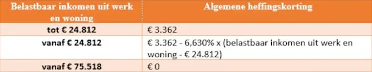 - Dit betekent ook dat de algemene heffingskorting verandert (zie tabel hieronder). Hiermee stijgen de nettosalarissen.