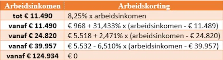 - De tabelcorrectiefactor van 1,0961 wordt 1,099 en dat vertaalt zich naar een indexatie van 9,9 procent. Deze verlaging werkt ook door naar de indexatiefactor van de arbeidskorting (zie tabel hieronder).